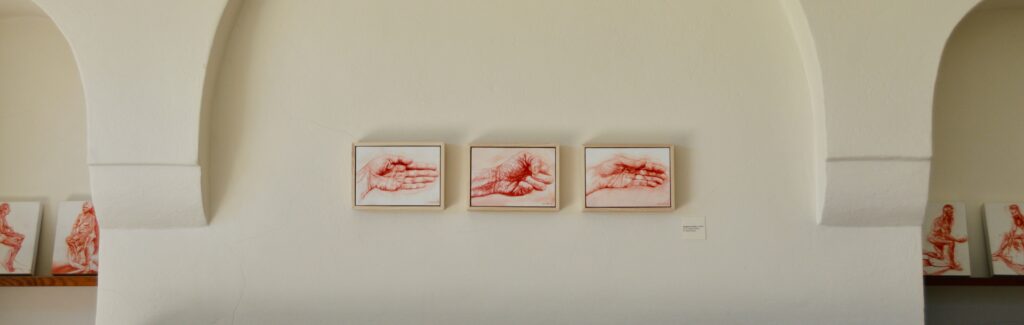 Hence, not only does this exhibition address displacement, but also physical and metaphorical dismemberment. As a follower of Christ and brought up in a protestant Christian home, Hugo could not reconcile the apathy in, for example, South African reformed churches and even sometimes, the support, for example, from American evangelical churches, of the genocide and aggression enacted upon Palestine and surrounding countries, by a nation we have been tough to respect as a chosen people in our religious establishments. The conflict in the Middle East, caused a much belated personal paradigm shift in Hugo's pre-established ideologies.