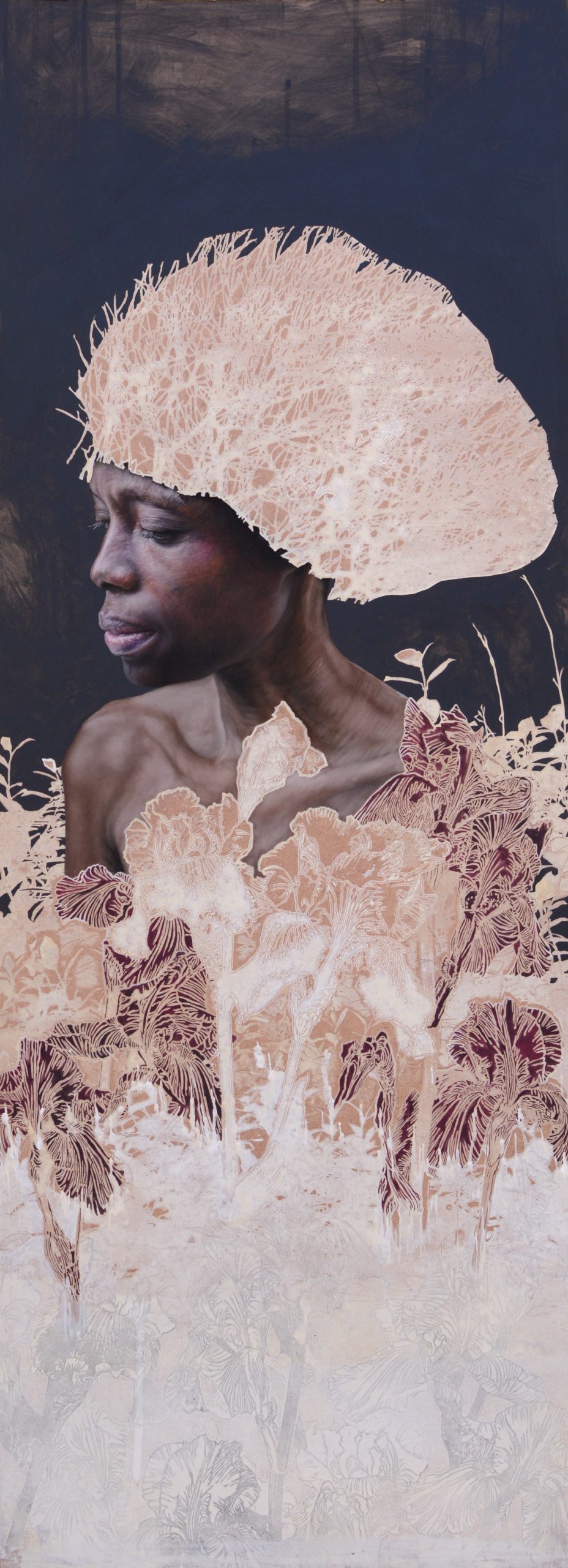 Daphne IV, 122cm x 88cm, pastel, lino print and acrylic paint on board