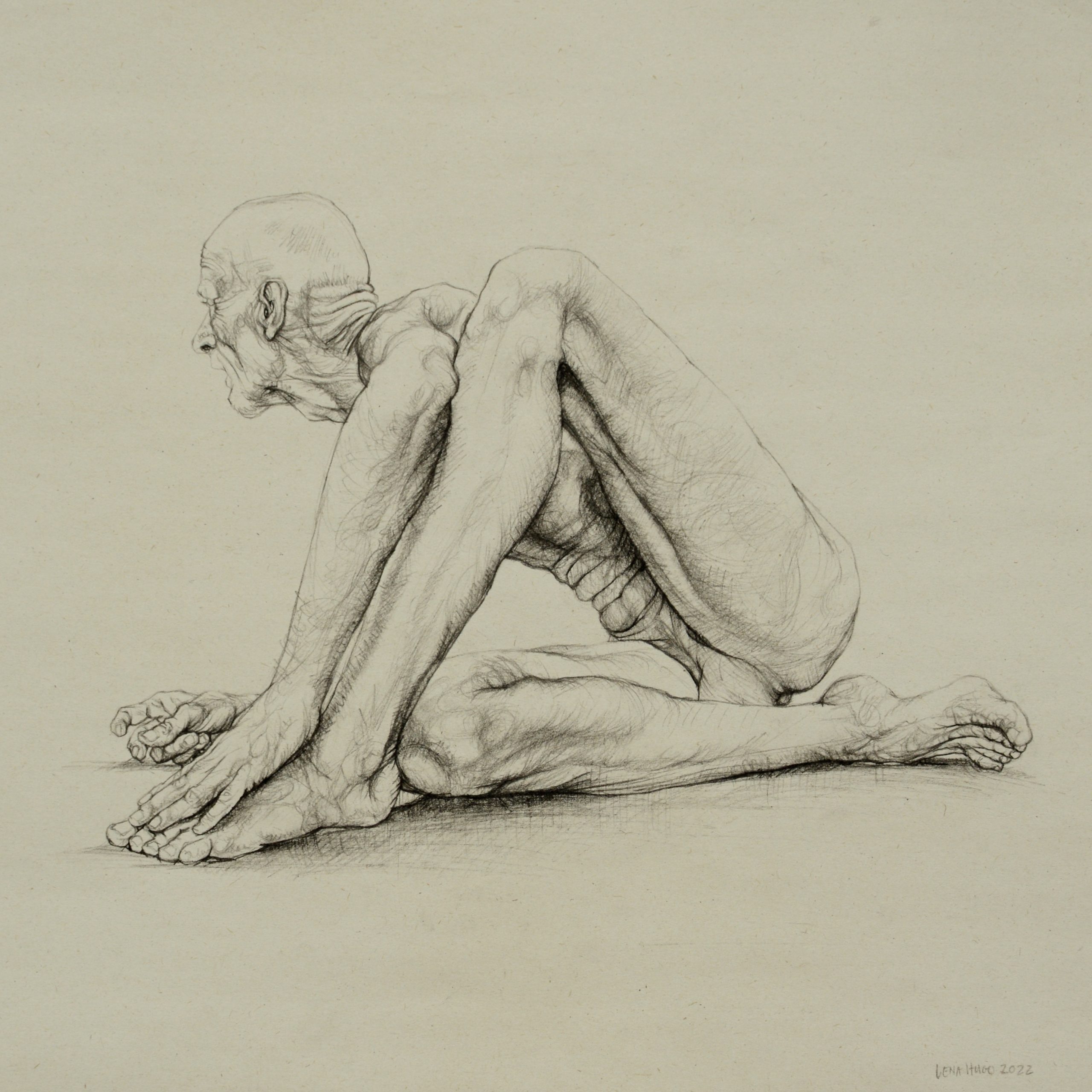 Pose as a Windswept Tree V, 42cm x 30cm, woodless charcoal on paper